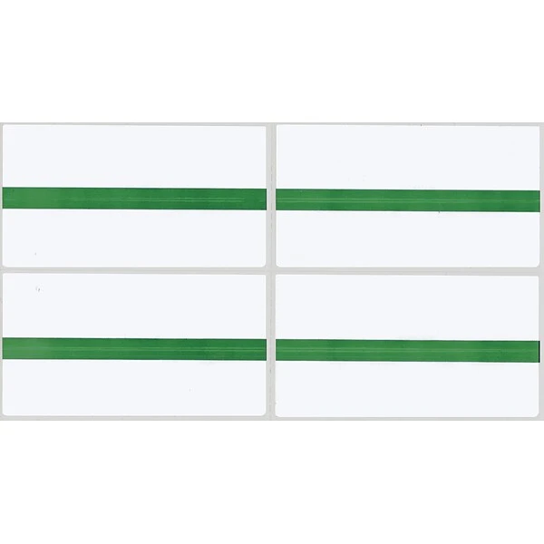 Add see-thru color to existing labels. Apply these Green colored edge transparent protectors over existing name labels to color code and protect. Quickly stops misfiles. Pressure sensitive. 100 protectors. Size: 3-1/2″ x 2″ (before folding).