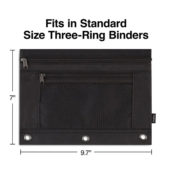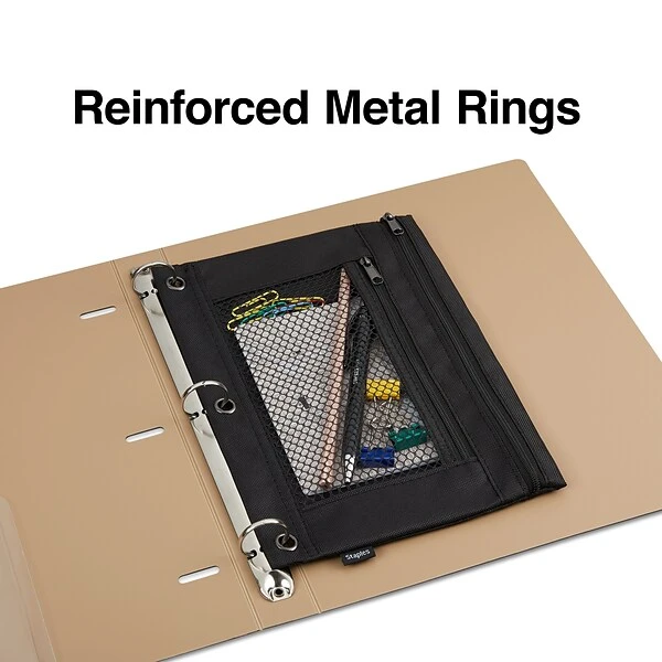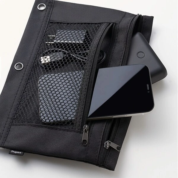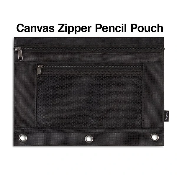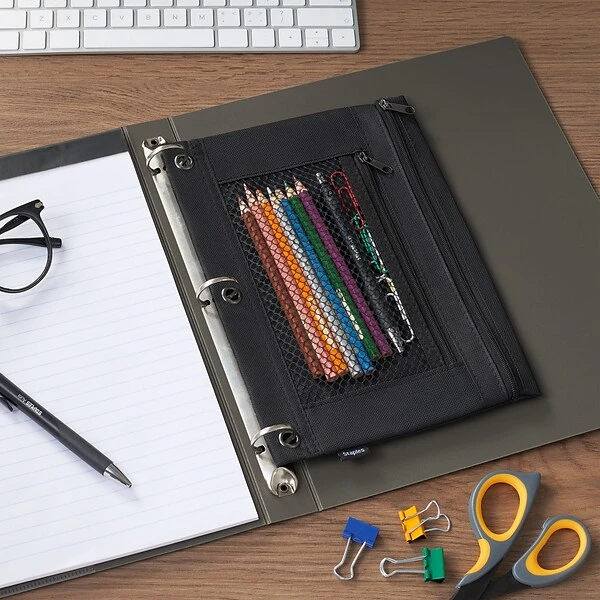 - Staples 3-ring pencil pouch has three reinforced holes for easily snapping into your binder