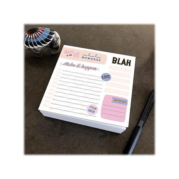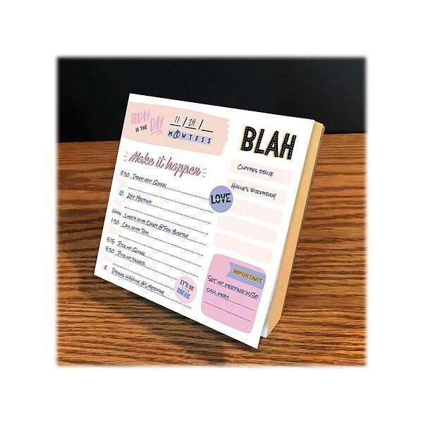 Plan as you desire and customize your daily schedule with this TF Publishing open-dated, daily note block. Each tear-off page has a dedicated spot to write in the date and circle the day of the week. Daily pages also have lines for optimal and neat lists with sections for today’s schedule, top priorities, and notes. This daily note can lay flat or stand up on end.