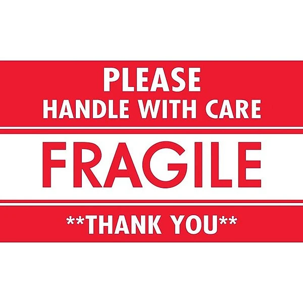 Make sure people use caution while moving fragile items with these The Packaging Wholesalers “Please Handle with Care Fragile Thank You” labels. The bold design ensures they attract attention, while the pressure-sensitive self-adhesive makes them easy to apply and prevents them from falling off. These The Packaging Wholesalers “Please Handle with Care Fragile Thank You” labels come with 500 per roll, so it’s easy to stay stocked up.